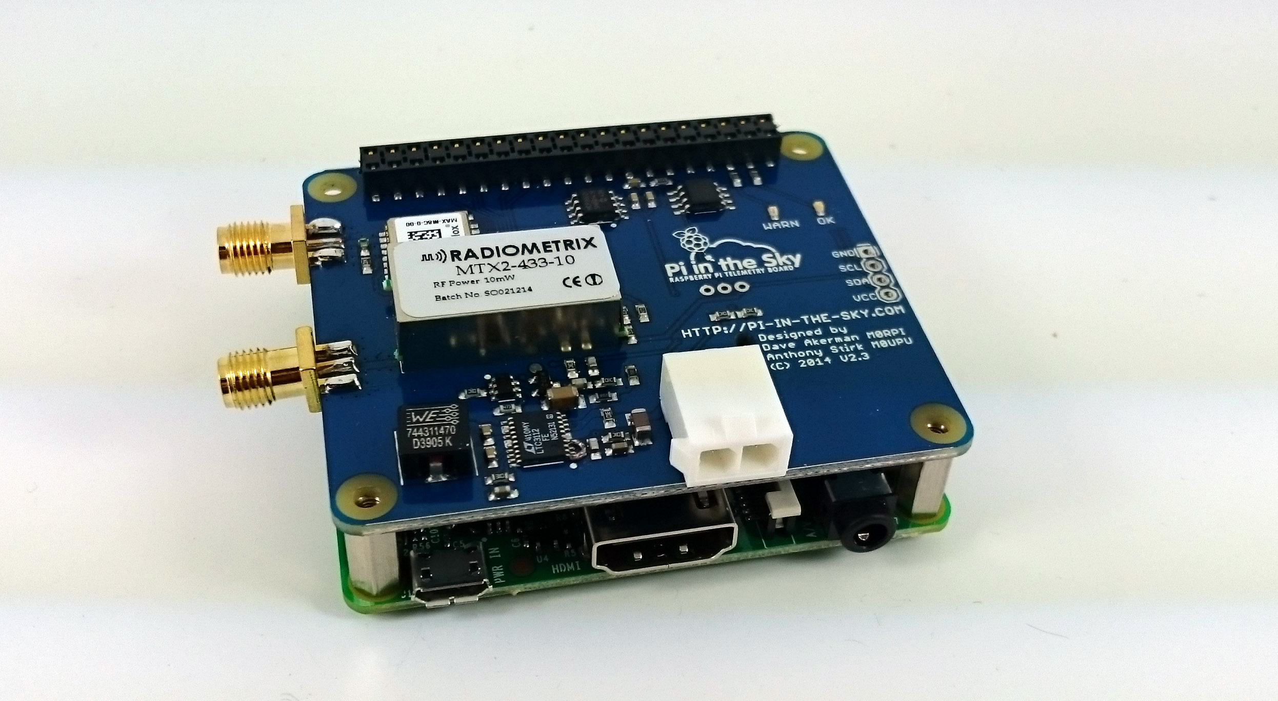 Now place the Pi In The Sky board on top of the header, it should click securely in place :